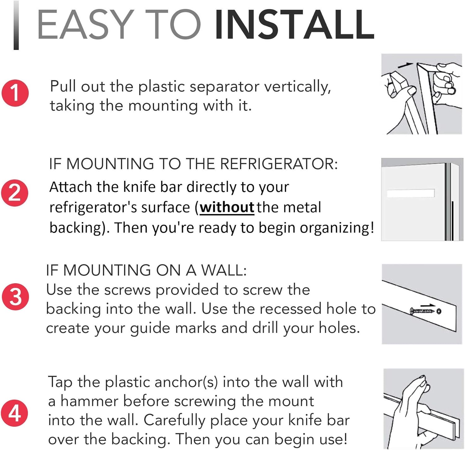 FLEXIBLE INSTALLATION OPTIONS: Mount on walls with provided hardware or attach to your fridge for versatile setup choices.