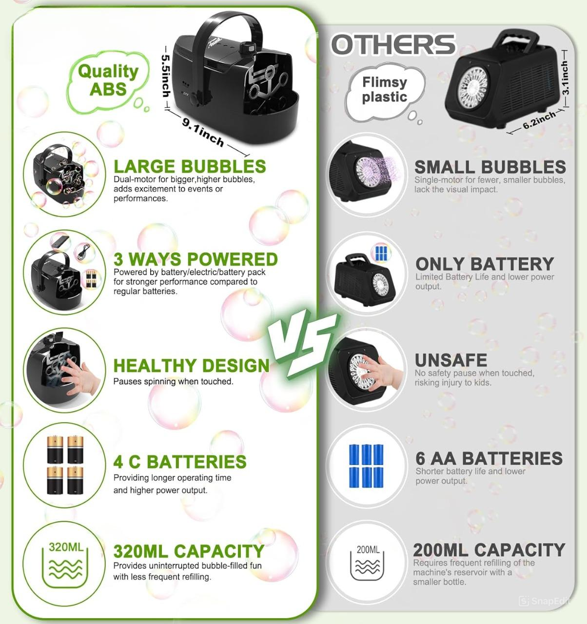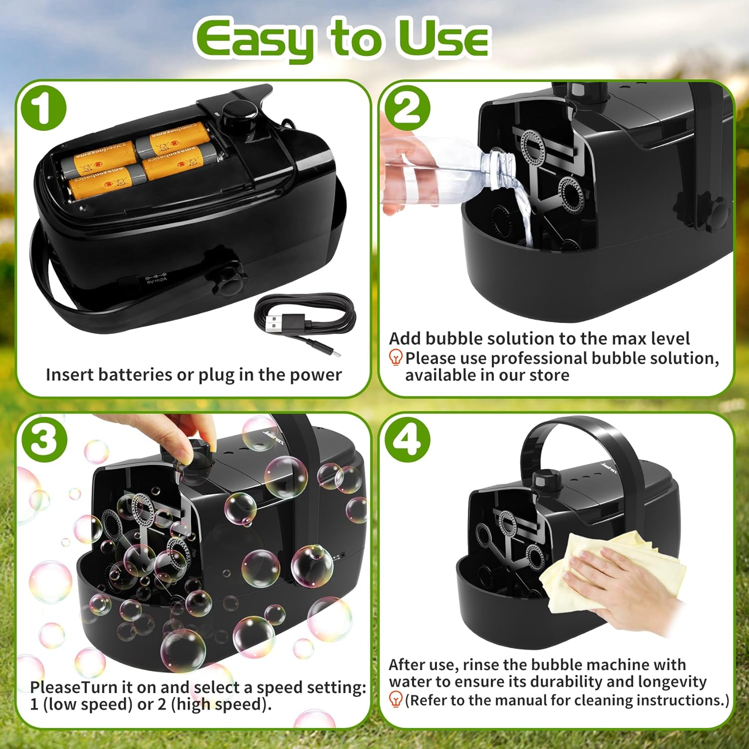Bubble Machine Blower Our bubble machine blower quickly and continuously makes tons of colorful bubbles, adding fun and excitement for kids and pets. It's perfect for parties and outdoor events,...