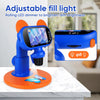 Key features include a high-def 4" LCD screen and LED lighting for clear visibility. Capture high-res photos and videos up to 1080P, making it great for field trips and home studies. The rechargeable 2600mAh battery lasts over 2.5 hours.