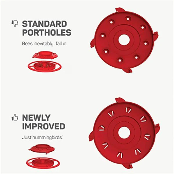 - Critter Protection: The base's incredibly cleverly crafted tiny feeding apertures keep bees out of the feeder's interior, where they could jam it. Ants are unable to enter the feeder because of the water-filled hole in the top.